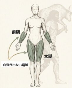 全く違う理由で腕や太腿(大腿四頭筋)はこりますが、治療のポイントとしてどちらも外せません。