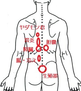 以前から、「背中を診れば内臓の状態がわかる」と言っている。いくつか代表的なポイントをお話したい。